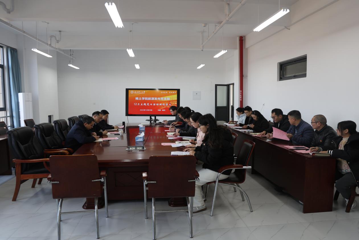 会上,刘松彬等同志围绕“十五五规划”等专题开展学习研讨。全体党员表示,要强化责任担当,深耕稀土教育科研领域,以实际行动践行使命,为学校创建稀土及关键矿产领域世界一流大学而不懈奋斗。