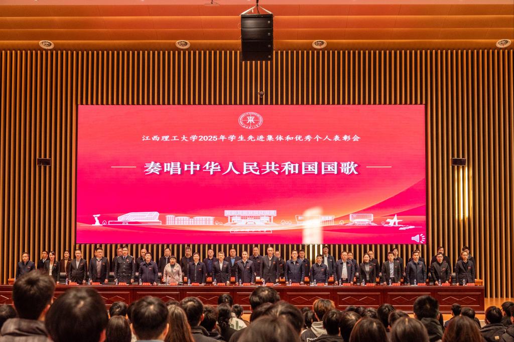 葛世荣向获得表彰的先进集体和个人表示热烈祝贺,希望大家保持谦虚谨慎、不骄不躁的态度,再接再厉、乘势而上,争取取得更加优异的成绩。他强调,全体同学要深入学习贯彻习近平新时代中国特色社会主义思想,积极践行社会主义核心价值观,努力成长为能担当民族复兴大任的时代新人,为学校创建“稀土及关键矿产领域世界一流大学”贡献青春力量。他对同学们提出了三点期望:一是传承红色基因,做胸怀家国的江理人,在时代浪潮中把握成长机遇,在现实挑战中磨砺意志品格;二是筑牢有色根基,做笃志前行的江理人,在科技竞赛中勇攀高峰,在多元舞台上绽放光彩;三是争创出色成果,做拔尖创新的江理人,用勤劳的双手和诚实的劳动争创一流佳绩、拥抱美好生活。