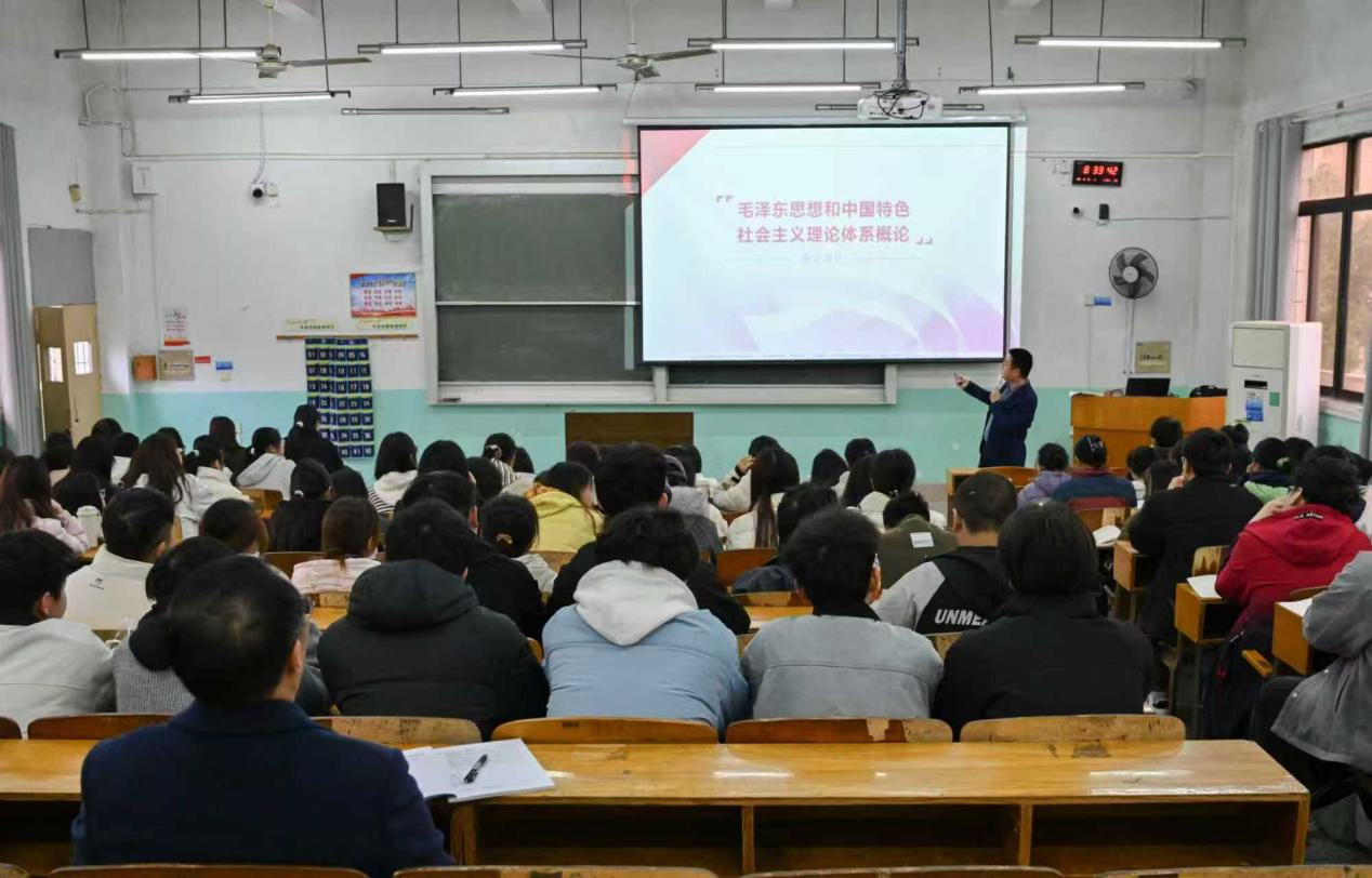 校党委副书记徐志峰在三江校区听了王邦辉老师上的《毛泽东思想和中国特色社会主义理论体系概论》课,他教导学生关注国内外形势,加强理论武装掌握透过现象看本质的本领,进一步增强爱党爱国情怀,并与授课老师进行了交流。