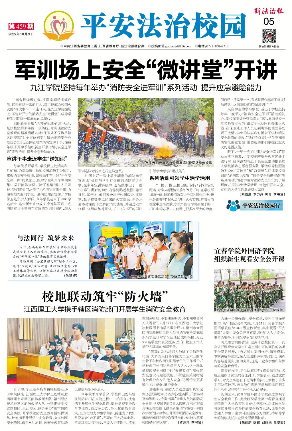 《新法治报》:校地联动筑定“防火墙”江西理工大学携手辖区消防部门开展学生消防安全教育