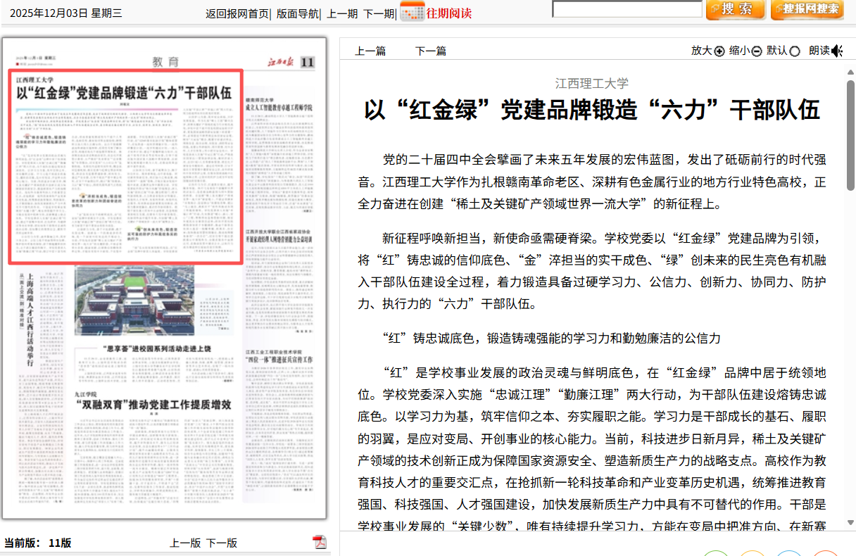 《江西日报》:江西理工大学以“红金绿”党建品牌锻造“六力”干部队伍