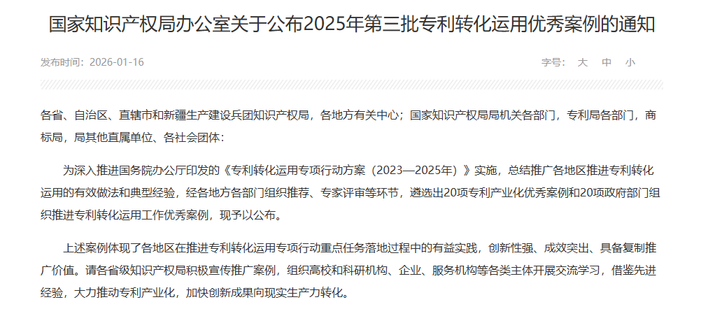 大江新闻讯(通讯员何熠楠)近日,国家知识产权局公布了20个2025年第三批专利转化运用优秀案例(专利产业化优秀案例)名单,江西理工大学申报的“深化校企对接模式,合力推进稀土及关键矿产领域高价专利组合转化运用”项目是全省唯一入选案例。