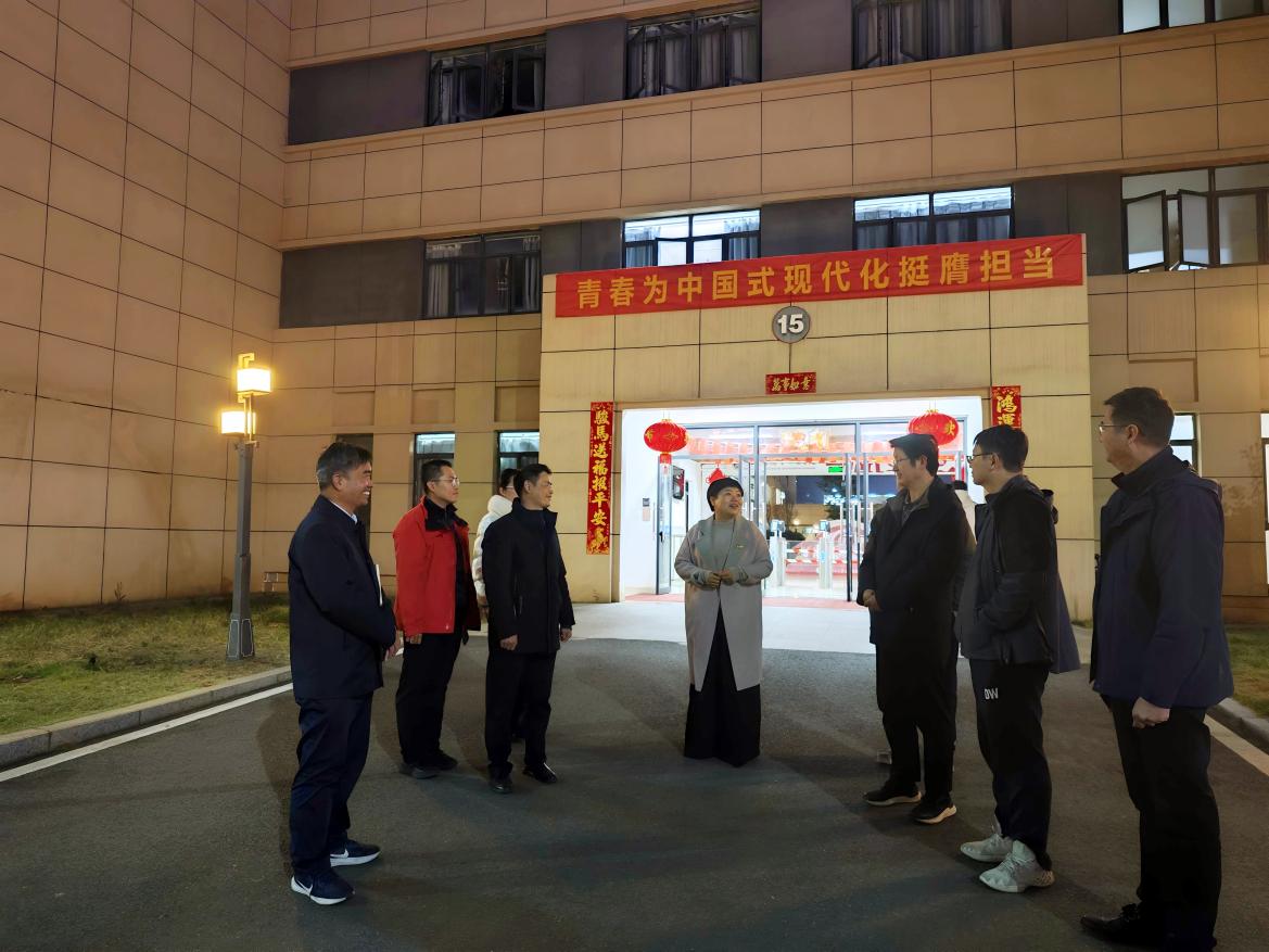 本网讯 1月4日晚,校党委常委、副校长宁洁一行深入土木与测绘工程学院15栋“一站式”学生社区,聚焦社区育人阵地建设、学生管理服务优化、思政教育融入日常等开展实地调研走访,掌握“一站式”学生社区建设成效,为后续育人工作提质增效精准把脉。党委学生工作部部长刘传立、土木与测绘工程学院党委书记贾群燕、正茂园各学生社区所属学院党委副书记及辅导员代表陪同调研。