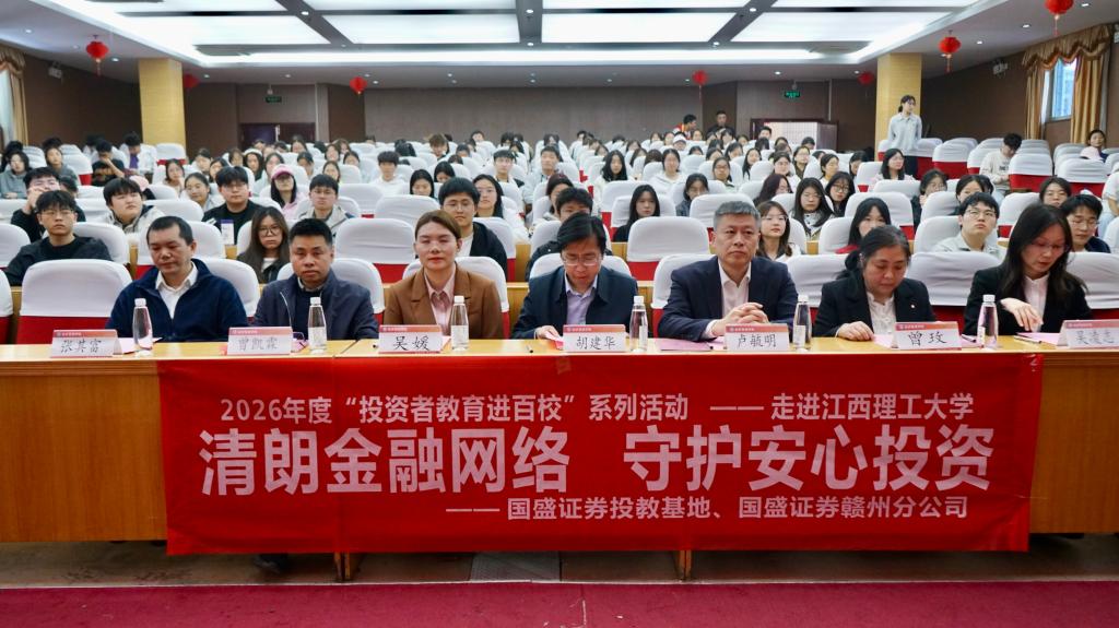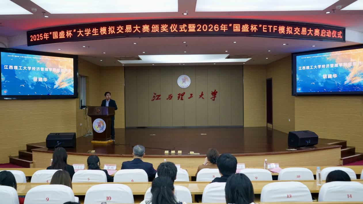 本网讯 3月15日,2025年“国盛杯”大学生模拟交易大赛颁奖仪式暨2026年“国盛杯”ETF模拟交易大赛启动仪式在红旗校区赵氟隆报告厅举行。活动由江西省证券期货业协会、江西理工大学、国盛证券股份有限公司主办,江西理工大学经济管理学院等单位承办。国盛证券总经理吴凌志、国盛证券交易部朱九妹、国盛证券分公司钟沐阳到场指导,经济管理学院党委书记胡建华、党委副书记吴媛、金融系主任曾凯霖、赣州市金融研究院执行院长张其富及学生代表共同参加。